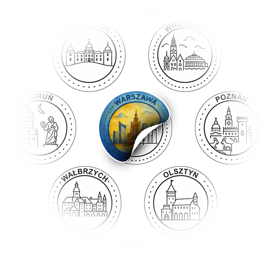 Pierwsza kolekcja Termosu Podróżnika - 24 wyjątkowych polskich miast i ich symbole.